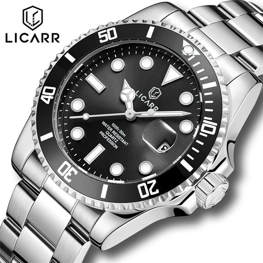 LICARR Original Brand Men's Watches Classic Quartz Waterproof Clock Male Casual Fashion Chronograph Luminous Date